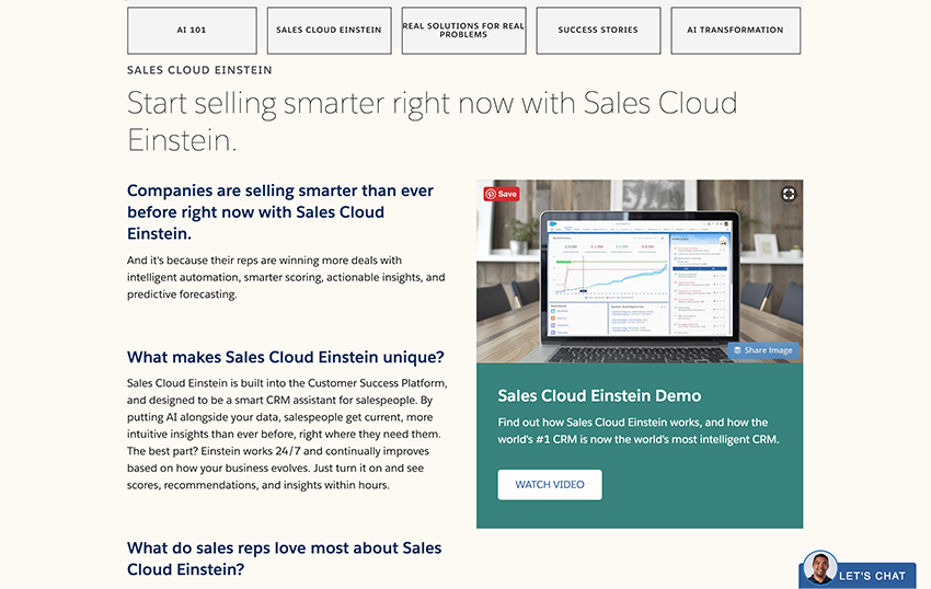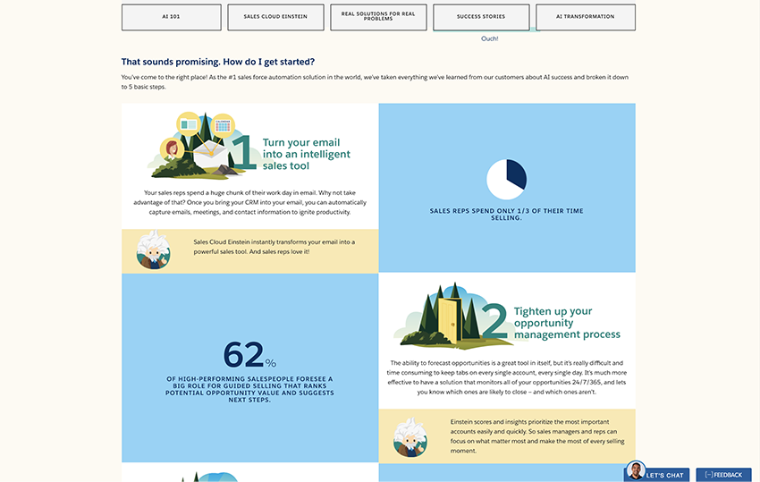 Salesforce needed a relaunch of its Sales Cloud Einstein landing page. Though they were one of the first-to-market companies to offer legitimate AI tools for business, they were getting lost among all the new, flashy competitors. The relaunch served to get them back in the conversation.