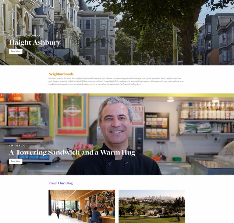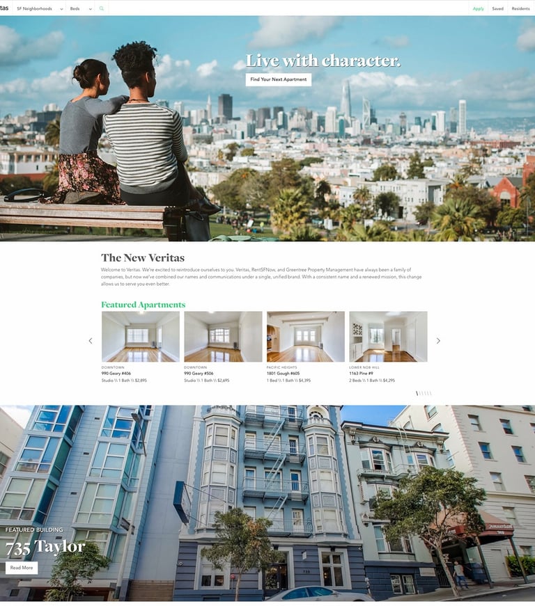 Veritas needed a brand makeover to help establish itself as the premier company to talk to if you want to live an authentic, San Francisco lifestyle. With more knowledge of all the neighborhoods, destinations, and microclimates, and the best buildings overflowing with charm and character, Veritas has something to match everyone's personality.